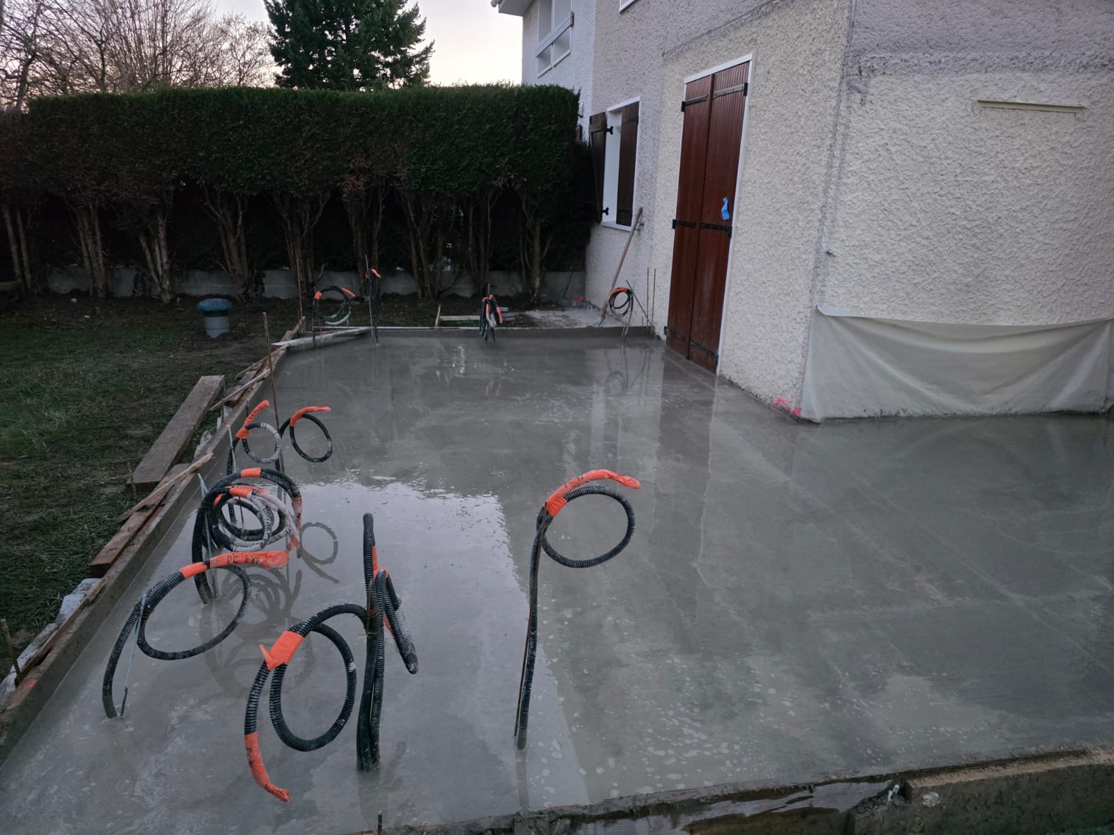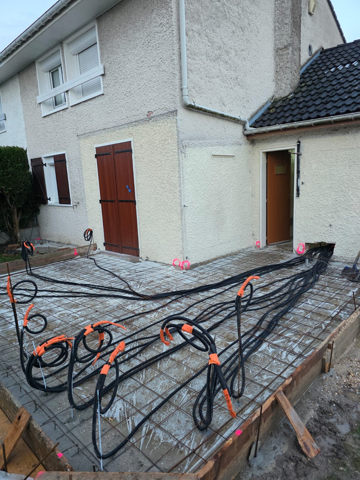 Fondations et dallages : Préparation du terrain et coulage de dalles béton.